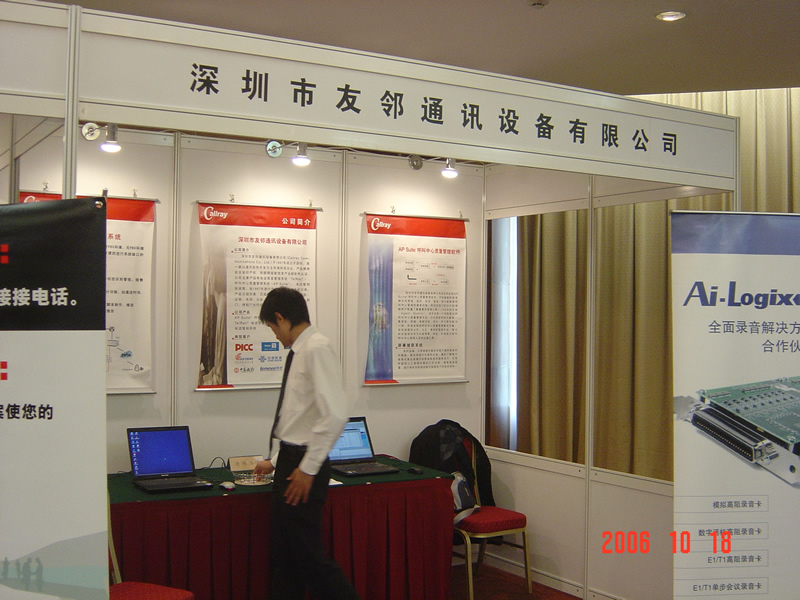 。。2006年10月18日,2006保險業(yè)呼叫中心應(yīng)用暨電話營銷高峰研討會在北京天鴻科園大酒店隆重召開,以下是展廳參觀的相關(guān)圖片報道:
