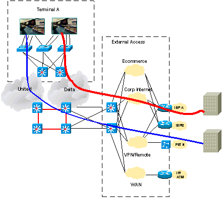 思科智能機(jī)場解決方案采用了多種聯(lián)網(wǎng)技術(shù)和拓?fù)浣Y(jié)構(gòu):電子商務(wù)基礎(chǔ)設(shè)施(物理層)、智能網(wǎng)絡(luò)服務(wù)和大量的可行設(shè)計(jì)和架構(gòu)。思科機(jī)場網(wǎng)絡(luò)架構(gòu)由經(jīng)過思科企業(yè)解決方案設(shè)計(jì)測(cè)試實(shí)驗(yàn)室預(yù)測(cè)試的成熟網(wǎng)絡(luò)部件組成。這些經(jīng)過測(cè)試的設(shè)計(jì)則是基于經(jīng)由構(gòu)建全球最大的網(wǎng)絡(luò)而得出的最佳實(shí)踐。測(cè)試結(jié)果請(qǐng)參見"解決方案參考設(shè)計(jì)指南