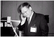 Avaya副總裁兼首席技術(shù)官M(fèi)un-Yuen Leong在使用PDA撥打電話