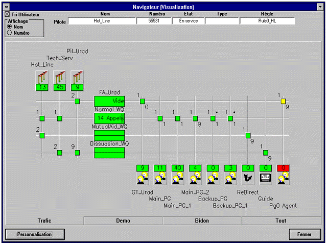 A4400 CCS 呼叫中心監(jiān)管系統(tǒng)是A4400 CCD 的完美配套設(shè)備。此監(jiān)管系統(tǒng)組件提供最新實(shí)時(shí)監(jiān)控功能。經(jīng)理和主管不僅能很好協(xié)調(diào)呼叫處理過(guò)程,而且也能觀(guān)察服務(wù)水準(zhǔn)、話(huà)務(wù)量情況等,并能在現(xiàn)場(chǎng)采取相應(yīng)的措施。