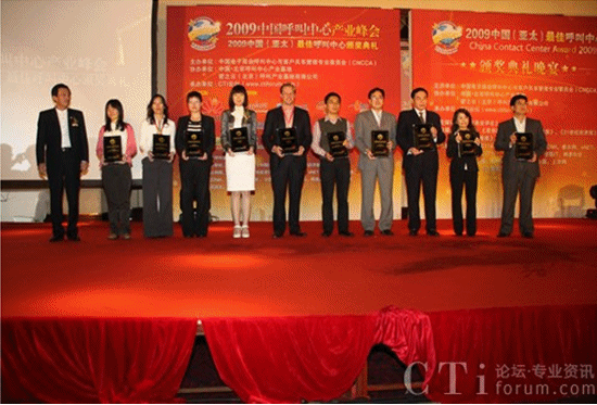 “2009中國呼叫中心產(chǎn)業(yè)峰會暨2009中國(亞太)最佳呼叫中心”頒獎典禮于10月15日在北京富力萬麗酒店舉行并取得圓滿成功。本次大會由中國電子商會呼叫中心及客戶關(guān)系管理專業(yè)委員會(CNCCA)主辦,密之云(北京)呼叫產(chǎn)業(yè)基地有限公司協(xié)辦,CTI論壇承辦。同時(shí),大會還獲得了亞太客服與呼叫中心聯(lián)盟(APCCAL)、上海市呼叫中心與無線尋呼協(xié)會和北京市通信行業(yè)協(xié)會呼叫中心專業(yè)委員會等機(jī)構(gòu)的大力支持。