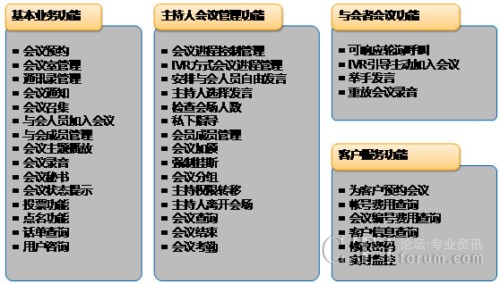 所謂“交互式電話(huà)會(huì)議”是指由分布在不同地方的與會(huì)者,通過(guò)固定電話(huà)或移動(dòng)電話(huà)或數(shù)字電話(huà)終端等通信終端,采用約定的方式(呼入方式或呼出方式)進(jìn)入電話(huà)會(huì)議狀態(tài),主持人和與會(huì)者彼此能自由交談,自由發(fā)言的業(yè)務(wù)。新太交互式電話(huà)會(huì)議服務(wù)系統(tǒng)對(duì)“交互”二字的體現(xiàn)主要表現(xiàn)在語(yǔ)音的交互及控制的交互兩方面。語(yǔ)音的交互是指會(huì)議主持人以及與會(huì)者不僅可以聽(tīng)到會(huì)議現(xiàn)場(chǎng)別人的發(fā)言,還可以自由地發(fā)表自己的見(jiàn)解;控制的交互性是指會(huì)議主持人具有對(duì)整個(gè)會(huì)議的控制權(quán),有權(quán)加入新與會(huì)者或強(qiáng)行拆除某與會(huì)者,有權(quán)決定是否對(duì)會(huì)場(chǎng)錄音等。此外,在交互式電話(huà)會(huì)議的定義上本系統(tǒng)還延伸出多種會(huì)議模式,如允許申請(qǐng)發(fā)言的廣播式會(huì)議、點(diǎn)名發(fā)言的廣播式電話(huà)會(huì)議、分組討論會(huì)議等。
