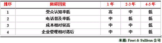 表三羅列了制約中國外包呼叫中心服務市場發(fā)展的主要因素。