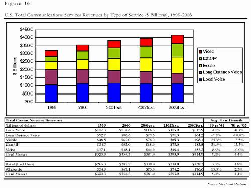 電信市場不是一個孤立的市場,而是由電信服務(wù)和電信制造兩個緊密相連的市場組成的。電信制造業(yè)不斷進行研發(fā)創(chuàng)新,為電信服務(wù)業(yè)提供新的業(yè)務(wù);而電信服務(wù)也利用電信制造業(yè)的新技術(shù),并把這些服務(wù)最終提供給商業(yè)和普通消費者兩類用戶?梢哉f,電信制造業(yè)的發(fā)展在很大程度上是由電信服務(wù)業(yè)決定的。要了解電信制造市場的將來,不得不從電信服務(wù)市場的變化談起。