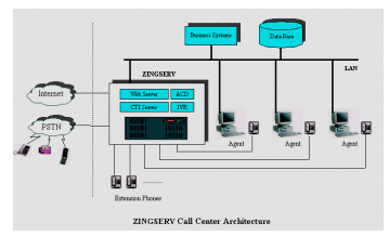 ZINGSERVò采用可靠性、安全性極高的嵌入式實時LINUX操作系統(tǒng)進行開發(fā)。系統(tǒng)軟件采用客戶/服務(wù)器結(jié)構(gòu),服務(wù)器集ACD(技能組)、IVR、CTI