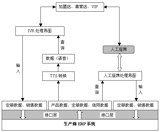 集成項目:與生產商ERP系統(tǒng)集成,增加人工座席應用和IVR應用