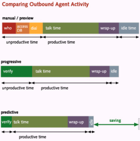預(yù)測撥號 是一種用來在一個短的時段中對大量客戶進(jìn)行聯(lián)絡(luò)的一種先進(jìn)的步進(jìn)模式。使用預(yù)測撥號,坐席代表僅僅處理成功的呼叫。預(yù)測撥號實現(xiàn)了最高水平的效率。預(yù)測撥號使用精密復(fù)雜的技術(shù)預(yù)測沒有被應(yīng)答的呼叫的一個百分比和什么時候坐席代表將完成正在進(jìn)行著的呼叫。預(yù)測撥號將自動撥電話號碼并對其中一些呼叫會失敗做好了準(zhǔn)備。使用預(yù)測撥號,坐席代表每小時的通話時間大約在40到45分鐘。