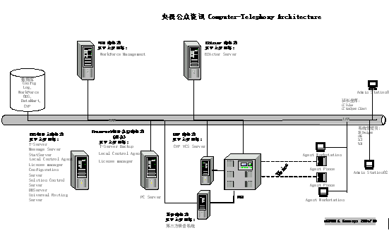 改建后的CCTV公眾資訊中心系統(tǒng),配置了帶冗余備份的Genesys Framework基本平臺及ERS企業(yè)路由解決方案、WFM人力資源管理解決方案、GVP自動語音應(yīng)答解決方案和EZactor呼叫中心CRM平臺。