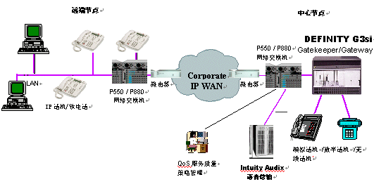 DEFINITY IP 解決方案把AVAYA的功能強(qiáng)大的通信應(yīng)用和能力擴(kuò)展到新的IP環(huán)境中,DEFINITY IP 解決方案集 DEFINITY ECS系統(tǒng)和IP 網(wǎng)絡(luò)于一體。采用該方案,用戶將獲得 DEFINITY ECS系統(tǒng)的可靠性、功能性和豐富的應(yīng)用,同時(shí)獲得IP網(wǎng)絡(luò)的靈活性和無所不在的普及性。而且,用戶還將保護(hù)在現(xiàn)在語(yǔ)音/數(shù)據(jù)基礎(chǔ)設(shè)施以及用戶和管理員培訓(xùn)方面的投資。