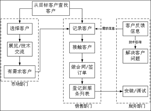 公司從很早就認(rèn)識到經(jīng)營中存在的這些問題,一直在尋找解決的方法和途徑。我們逐漸認(rèn)識到,公司經(jīng)營亟待解決的問題就是如何高效地處理客戶信息、有效地進(jìn)行客戶關(guān)系的管理,這是影響到公司能否獲得更大發(fā)展的關(guān)鍵。因為在公司剛剛起步時,業(yè)務(wù)人員面對的是很少的客戶群,他們對每個客戶的具體情況非常熟悉,能夠根據(jù)每個客戶的不同需求特點提供相應(yīng)的產(chǎn)品和服務(wù)。而公司的管理人員面對的也是很少的業(yè)務(wù)人員,他們可以清楚地掌握每個業(yè)務(wù)人員的工作情況,并有針對性的加以監(jiān)督管理。公司的業(yè)務(wù)部門設(shè)置相對簡單,彼此的溝通和配合也比較容易進(jìn)行。這時候幾乎不存在客戶的管理問題。但當(dāng)公司的業(yè)務(wù)成倍增長后,業(yè)務(wù)人員和客戶的數(shù)量都空前膨脹,這時候簡單的管理手段就承擔(dān)不了如此沉重的管理任務(wù),公司的經(jīng)營就會出現(xiàn)混亂。突出的表現(xiàn)就是客戶、業(yè)務(wù)人員失控,公司的業(yè)務(wù)拓展陷入無序狀態(tài),失去繼續(xù)增長的動力。在這種情況下,要使公司的經(jīng)營走出泥潭,必須要引入的就是先進(jìn)的客戶關(guān)系管理的觀念和手段。