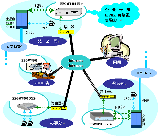 解決方案一:企業(yè)專網(wǎng)EIPBX網(wǎng)絡通信系統(tǒng)
