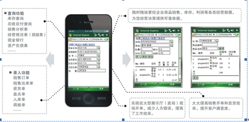應(yīng)時代潮流和中小企業(yè)對移動商務(wù)應(yīng)用的需求,自2010年,任我行軟件公司開始研發(fā)針對中小企業(yè)的移動商務(wù)系統(tǒng),幾經(jīng)探索之后,于2011年推出了穩(wěn)定、安全、應(yīng)用流暢的管家婆手機版。通過管家婆手機版,管家婆軟件用戶可以通過終端設(shè)備(手機、PDA或數(shù)據(jù)采集器)上網(wǎng),訪問管家婆軟件后臺系統(tǒng),隨時隨地處理業(yè)務(wù),查詢各種經(jīng)營數(shù)據(jù);谟脩舨僮髁(xí)慣,管家婆移動商務(wù)分為B/S版和C/S版,其移動系統(tǒng)的應(yīng)用涵蓋了OA、查詢報表、審核、簡單錄入以及快速錄單、掃描錄入等多個方面,所有的數(shù)據(jù)自動與系統(tǒng)實時同步。移動商務(wù)幫助企業(yè)擺脫時間、空間、地點的辦公限制,讓用戶可以隨時隨地靈活處理相關(guān)工作。