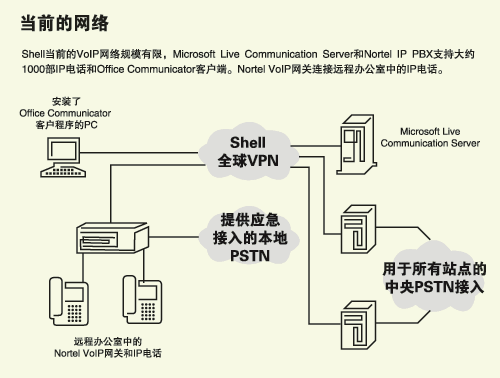 過去購買和部署系統(tǒng)一直由本地Shell辦事處和子公司做出決定。這就使Shell公司內(nèi)部的通信系統(tǒng)變得五花八門,難以駕馭。而集中式VoIP系統(tǒng)將避免這樣的作法。