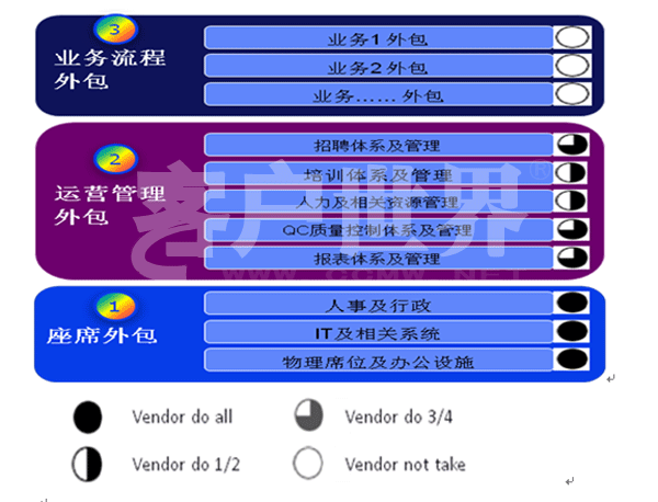 以下內(nèi)容,可供大家在進(jìn)行外包業(yè)務(wù)過(guò)程中參考,來(lái)靈活選擇和確定雙方各自的外包業(yè)務(wù)內(nèi)容。