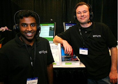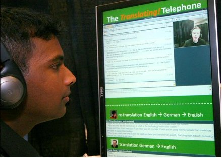 Thambiratnam說:“當(dāng)多種不同背景的人需要一起交流時,我們的技術(shù)就能提供非常大的便利!盩hambiratnam用同聲傳譯電話展示了這樣一種的情景:Thambiratnam說英語,他要給他的德國籍經(jīng)理Frank