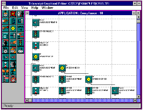 Enterprise 2002 圖形化腳本編輯器軟件工具可供Enterprise 2002的用戶使用。該圖形化編輯器是一種基于圖標(biāo)的呼叫流程管理工具,可用來(lái)查看和編輯通信腳本文件中所包含的呼叫流程。該工具為用戶提供了一個(gè)圖形化用戶界面,可使其通過(guò)在Windows應(yīng)用中點(diǎn)擊和拖拽鼠標(biāo)來(lái)創(chuàng)建和修改腳本文件。在操作過(guò)程中,用戶可隨時(shí)以輸入關(guān)鍵詞方式獲得相應(yīng)的幫助信息。