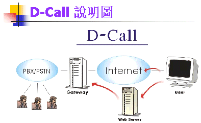 D-CALL指的是”Direct Call on Web”,提供電子商務(wù)中客戶與企業(yè)間網(wǎng)上實現(xiàn)網(wǎng)上實時語音互動平臺。