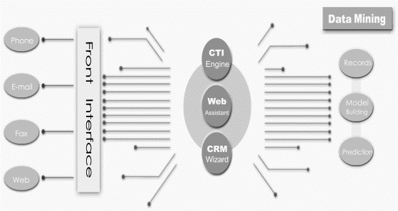 CTI.CRM整合了先進(jìn)的CTI(Computer Telephony Integration)、Call Center 、VoIP、Web、Fax、Email等多種通訊技術(shù),并導(dǎo)入客戶關(guān)系管理(CRM)的最新理論,使企業(yè)在市場行銷,業(yè)務(wù)開拓,及客戶服務(wù)上,均可透過此一整合工具,拓展商機(jī),提升服務(wù)績效。