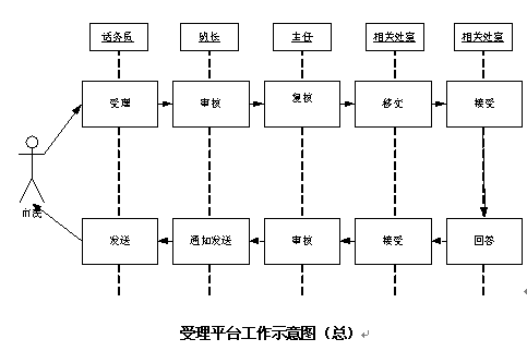 受理平臺(tái)包括:投訴受理、建議受理和疑難受理,數(shù)據(jù)扭轉(zhuǎn)都是工作流。所以系統(tǒng)設(shè)計(jì)時(shí),我們采用工作流的實(shí)現(xiàn)方式,自定義數(shù)據(jù)類(lèi)型、數(shù)據(jù)節(jié)點(diǎn)以及數(shù)據(jù)流向。下面列出一種常用的業(yè)務(wù)受理模式,說(shuō)明業(yè)務(wù)的實(shí)現(xiàn)方法。