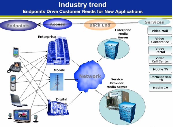 針對(duì)未來(lái)電信架構(gòu)的發(fā)展,林競(jìng)宇指出:“我們認(rèn)為傳統(tǒng)TDM在相當(dāng)長(zhǎng)時(shí)間會(huì)和IP網(wǎng)絡(luò)共存,所以我們的產(chǎn)品兼容IP、TDM以及新的架構(gòu)。我們的HMP就是考慮這樣的思路,