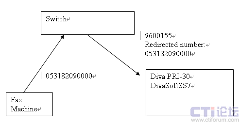 Dialogic Diva SS7傳真解決方案簡介:以往的傳真運營在處理接收傳真的時候都是通過提供一個接入平臺號(例如山東網(wǎng)通的商務(wù)新動力為9600155),然后通過語音提示輸入傳真信箱號。這樣做的缺點在于對于所有的客戶來說接入號碼都是統(tǒng)一的,不能滿足個性化需求。有一些客戶不想失去原有的傳真機號碼。希望網(wǎng)絡(luò)傳真系統(tǒng)能夠綁定他們原來的傳真?zhèn)髡鏅C號碼。例如某客戶原有的號碼是053182090000,通過號碼綁定,當(dāng)其他用戶向他發(fā)傳真的時候,撥打的號碼是053182090000,但是此呼叫會被呼轉(zhuǎn)到9600155。傳真平臺根據(jù)原始被叫號來接收傳真。原有的基于PRI的解決方案不能解決原始被叫號的傳送問題,所以必須借助SS7網(wǎng)絡(luò)才能實現(xiàn)?蛻魮艽053182090000,呼叫被呼轉(zhuǎn)到9600155.在Redirected