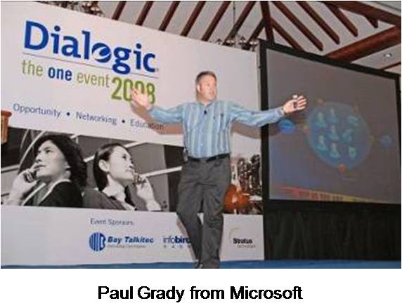 第二天上午,會議以Dialogic總裁兼CEO Nick Jensen強有力的演講開始,隨后是Dialogic執(zhí)行副總裁兼COO Tim Murray和Dialogic市場高級副總裁Jim Machi。 面向整個宴會廳的與會者,全天的會議包括了來自Dialogic產(chǎn)品線總監(jiān)James Rafferty和Dialogic企業(yè)產(chǎn)品線市場經(jīng)理Bud Walder等內(nèi)部演講者,和來自Yankee Group, PT. Excelcomindo Pratama 和Microsoft等外部演講者們激動人心的演講。會議結(jié)束時,由我們的合作伙伴Bay Talkitec贊助,有三個幸運贏家贏得了iPod touch 16G,iPod nano 8G和4G。