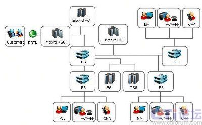 訊鳥于2007年初開始建設“啟通寶”呼叫中心平臺。該平臺的主體架構由控制中心和媒體網(wǎng)關組成,其中在北京建設的控制中心類似于系統(tǒng)的“主大腦”,在上海、廣州等其他核心城市建設第二級的控制中心,類似于系統(tǒng)的“從大腦”?刂浦行牡墓δ苁枪芾砗涂刂疲c企業(yè)客戶相連接。媒體網(wǎng)關類似于系統(tǒng)的“手腳”,其功能是采取行動,進行PSTN和IP網(wǎng)語音的轉換等處理。另外,各控制中心負責所屬區(qū)域的業(yè)務,同時互為備份。比如,北京的控制中心平時負責華北的業(yè)務,上海負責華東的業(yè)務,深圳負責華南的業(yè)務,一旦某一分中心發(fā)生故障或呼叫量超過額定處理能力時,異地分中心便能接管或分擔該分中心的業(yè)務。