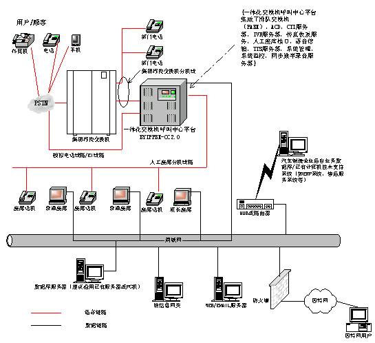 SERVER,從而構(gòu)成了軟硬件高度集成的一體化交換機(jī)呼叫中心平臺。