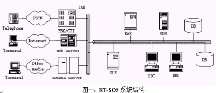 通過設(shè)計CTI程序, 實現(xiàn)電話交換設(shè)備(交換機(jī)、語音卡)和RT-SOS的通訊, 實現(xiàn)語音服務(wù)、人工坐席服務(wù)等。