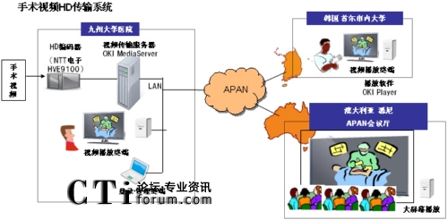 CTI論壇(ctiforum)2月22日消息(記者 張塵):近日沖電氣工業(yè)株式會社(OKI)子公司沖網(wǎng)絡(luò)株式會社和日本九州大學(xué)(校長:有川節(jié)夫,地址:日本福岡縣福岡市)一起成功完成向國外轉(zhuǎn)播HD(注1)手術(shù)視頻的測試。此項(xiàng)測試是2月8日至10日在澳大利亞悉尼召開的“第29屆Asia-Pacific