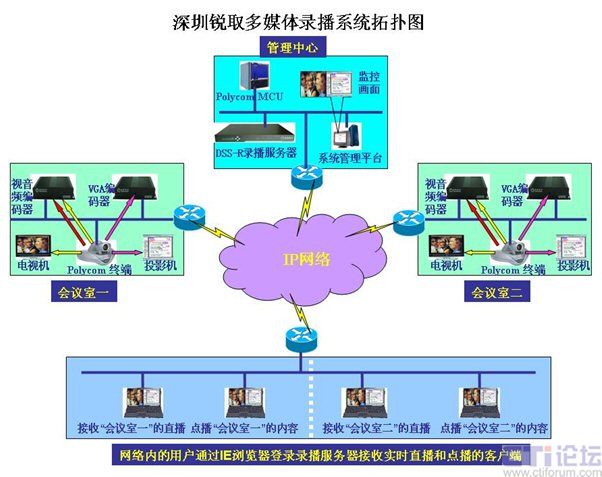 網(wǎng)絡(luò)內(nèi)的任意一臺(tái)計(jì)算機(jī)可通過IE瀏覽器直接登錄到管理中心的錄播服務(wù)器(需要管理員授權(quán)),可以接收實(shí)時(shí)的會(huì)議直播內(nèi)容,也可以對(duì)錄制好的文件進(jìn)行點(diǎn)播回放。