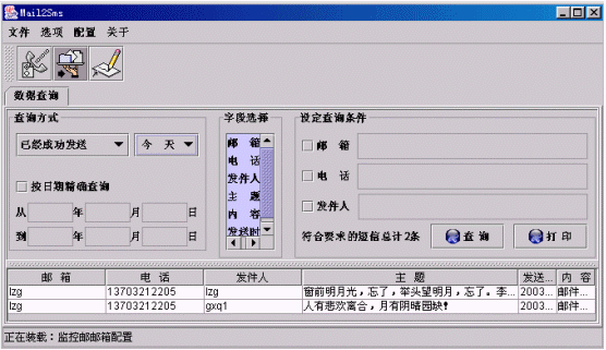 ·也可以通過給定查詢條件來查詢某項內(nèi)容,如針對某個郵箱、手機(jī)電話或發(fā)件人,方法是通過點(diǎn)擊左邊的小方框來選中,然后輸入相應(yīng)內(nèi)容即可,如下圖: