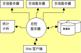 1. 以總控服務(wù)器為控制中心,控制一臺或多臺郵件發(fā)送服務(wù)器,每臺發(fā)送服務(wù)器管理一個或多個郵件隊列?刂浦行目刂凄]件列表,任務(wù)列表、作業(yè)列表,并與業(yè)務(wù)數(shù)據(jù)庫通過數(shù)據(jù)庫接口連接,根據(jù)條件提取數(shù)據(jù),更新郵件發(fā)送列表,生成統(tǒng)計分析報告。
