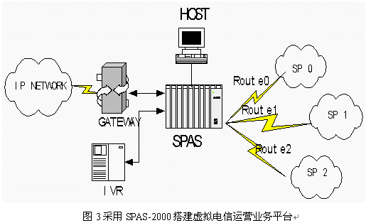中國(guó)加入WTO后,國(guó)內(nèi)與國(guó)際的聯(lián)系、交流和溝通將會(huì)越來(lái)越頻繁,這一趨勢(shì)帶來(lái)了巨大的電信服務(wù)市場(chǎng)商機(jī)。同時(shí),國(guó)際電信企業(yè)正在尋求進(jìn)入中國(guó)的途徑,國(guó)內(nèi)新興的電信運(yùn)營(yíng)商積極應(yīng)對(duì)這種局面,而虛擬電信運(yùn)營(yíng)商也在國(guó)內(nèi)開(kāi)始出現(xiàn)。如何爭(zhēng)取客戶(hù)是所有這些提供電信服務(wù)的企業(yè)共同面臨的課題。一個(gè)智能化的、高效的、靈活的、有特點(diǎn)并易于控制的服務(wù)平臺(tái)無(wú)疑是他們進(jìn)行競(jìng)爭(zhēng)的重要工具。由于SPAS-2000可編程交換機(jī)是一個(gè)全開(kāi)放的靈活平臺(tái),用戶(hù)通過(guò)應(yīng)用程序幾乎可以完全控制交換,能很好的滿(mǎn)足用戶(hù)的需求。在此SPAS-2000可編程交換機(jī)上開(kāi)發(fā)的電話(huà)批發(fā)及零售業(yè)務(wù)應(yīng)用,配合計(jì)算機(jī)技術(shù),能靈活控制業(yè)務(wù)的路由選擇、費(fèi)率計(jì)算并可提供個(gè)性化服務(wù),為運(yùn)營(yíng)商降低運(yùn)營(yíng)成本,提高服務(wù)質(zhì)量給出了有效的解決方案。例如一個(gè)IP電話(huà)運(yùn)營(yíng)商在全球互連中可能有多個(gè)合作伙伴,每個(gè)合作伙伴提供的服務(wù)也不相同,為了節(jié)省費(fèi)用并提高服務(wù)質(zhì)量,IP電話(huà)運(yùn)營(yíng)商需要根據(jù)時(shí)段、費(fèi)率、通話(huà)質(zhì)量、接通率等指標(biāo)智能選擇去話(huà)路徑。SPAS-2000可編程交換機(jī)提供編程開(kāi)發(fā)接口,通過(guò)E1與IVR連接,在服務(wù)器上開(kāi)發(fā)高層應(yīng)用軟件,可以實(shí)現(xiàn)多種高級(jí)功能。同時(shí)SPAS還可以連接各種型號(hào)的網(wǎng)關(guān)。應(yīng)用連接圖見(jiàn)圖3: