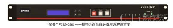 在視頻會議召開的過程中,主會場視頻終端等設(shè)備如果發(fā)生故障時(shí)其音視頻信號會發(fā)生中斷,由此將會使整個(gè)視頻會議無法繼續(xù)進(jìn)行,傳統(tǒng)的解決辦法是配置第二套視頻終端作為冷備份,當(dāng)主設(shè)備發(fā)生中斷時(shí)由系統(tǒng)維護(hù)人員以手工方式切換至備用設(shè)備。北京真視通自主研發(fā)的智備(產(chǎn)品型號:VCBS-0201),解決了主會場主備終端的自動(dòng)、快速、無縫切換的問題。