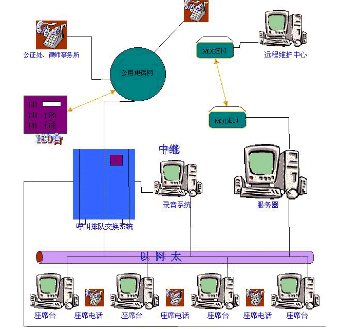 呼叫中心系統(tǒng)由用戶電話交換機(jī)、CTI服務(wù)器、IVR設(shè)備、應(yīng)用數(shù)據(jù)庫服務(wù)器、人工座席客戶機(jī)和電話終端等硬件設(shè)備和應(yīng)用軟件組成