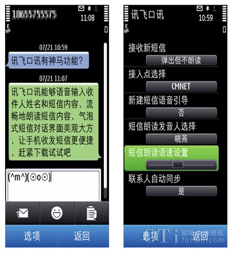 CTI論壇(ctiforum)8月2日消息(記者 張潔):不論是開(kāi)車還是玩游戲,總是難以騰出手來(lái)操控手機(jī),你是否想過(guò)如果可以通過(guò)耳朵就能聽(tīng)到短信內(nèi)容,然后說(shuō)說(shuō)話就能回復(fù)短信?近日,科大訊飛與騰訊應(yīng)用中心聯(lián)合首發(fā)了訊飛口訊(Symbian)新版v1.0.1100,該產(chǎn)品支持語(yǔ)音發(fā)送短信及新短信自動(dòng)語(yǔ)音朗讀,大大增添了Symbian手機(jī)的實(shí)用性和趣味性,滿足了廣大用戶解放手指、隨時(shí)隨地發(fā)短信的需求。