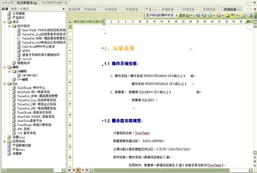 坐席人員在接入用戶的咨詢或呼出對(duì)用戶進(jìn)行銷售活動(dòng)時(shí),經(jīng)常會(huì)收到用戶大量的業(yè)務(wù)咨詢請(qǐng)求,而且會(huì)涉及到企業(yè)產(chǎn)品的各個(gè)方面的問題,這些問題有很多不容易被坐席人員全部記憶下來,為了幫助坐席人員處理這些業(yè)務(wù)咨詢,UltraCRM系統(tǒng)設(shè)計(jì)了知識(shí)庫系統(tǒng)。