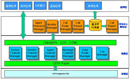 呼叫中心服務層是基于SynRoute CTILink之上的呼叫中心平臺,一方面與SynRoute CTILink無縫連接,呼叫中心集成商可以選擇呼叫中心服務層為客戶快速構建呼叫中心;另一方面,SynRoute