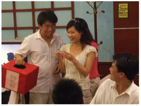 在聚餐接近尾聲的時(shí)候開始了激動(dòng)人心的抽獎(jiǎng)活動(dòng),本次共產(chǎn)生8個(gè)大獎(jiǎng)。每個(gè)中獎(jiǎng)同仁都獻(xiàn)歌一曲,從而使活動(dòng)的氣氛達(dá)到了高潮。
