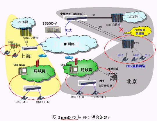 傳統(tǒng)的通信網(wǎng)絡(luò)很發(fā)達(dá),很多機(jī)構(gòu)都通過(guò)小型程控交換機(jī)(PBX)來(lái)組建小型的電話網(wǎng)。在我們做VOIP系統(tǒng)的規(guī)劃時(shí),就需要考慮新的VOIP系統(tǒng)和原有的PBX如何協(xié)同工作的問(wèn)題。首先,我們還需要使用PBX,不能因?yàn)榻ㄔO(shè)新的系統(tǒng)就浪費(fèi)原有的投資。其次,大家都習(xí)慣了原來(lái)的PBX的使用方式,如4位內(nèi)部小號(hào),我們希望能夠不改變或盡量少改變用戶(hù)的使用習(xí)慣,這樣才能比較平滑的過(guò)渡到VOIP。MindSYS充分考慮了行業(yè)用戶(hù)的這種特點(diǎn),能夠與PBX聯(lián)合組網(wǎng),并且新的VOIP系統(tǒng)可以使用與原來(lái)PBX等長(zhǎng)的小號(hào),對(duì)用戶(hù)來(lái)說(shuō)新舊系統(tǒng)的使用習(xí)慣是沒(méi)有分別的,兩個(gè)系統(tǒng)可以互通。