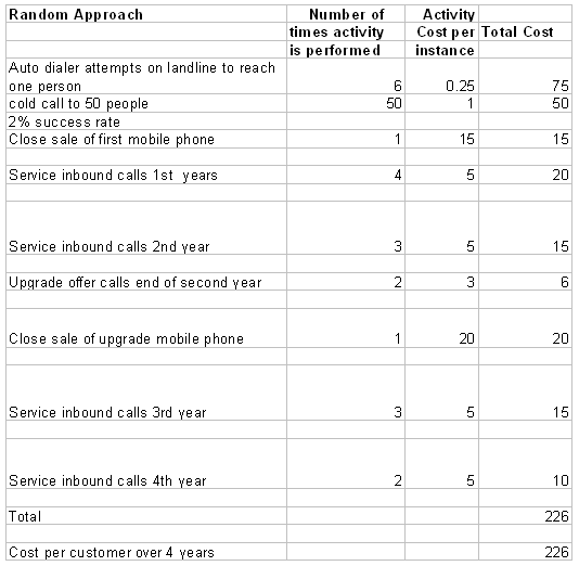 表格1:獲得客戶的隨機(jī)法的行動(dòng)成本計(jì)算