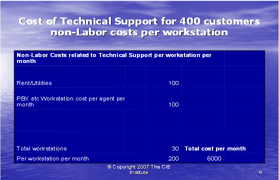 最后,我們可以如同下面圖表10所示,把所有的信息放在一起。每個客戶的技術支持的實際成本包括間接人工成本和工作場地成本,這是服務一個客戶所花費成本的正確的反映。