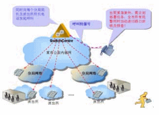 在公安系統(tǒng)中,有時候出現(xiàn)緊急案件,需立刻部署任務,例如要求全市所有民警同時出動進行路口封鎖及排查!如果一個一個打電話通知將會很麻煩,如果有電話廣播功能將是很方便的,可以同時接通很多電話,將命令廣播下去。華為3Com公司V2oIP系統(tǒng)在強大的GK支持下,只要事先定義了特服號對應的電話號碼群組,撥通特服號就能實現(xiàn)電話廣播。
