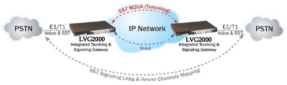 TDM隧道這一特性可以被使用去傳輸除7號(hào)信令連接之外的7號(hào)信令通道,使用LVG 2000支持的SIGTRAN和SS7互通(見圖3)