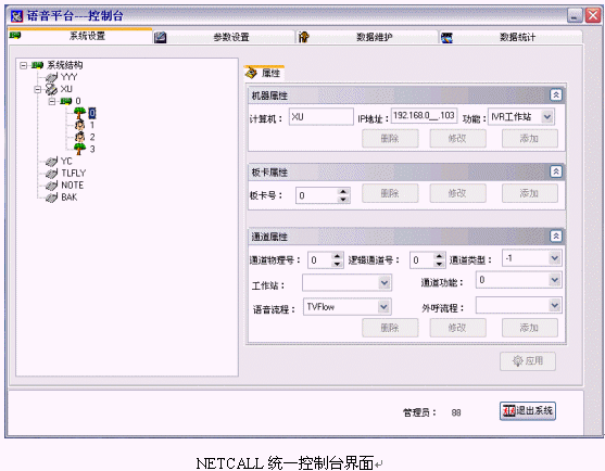 NETCALL呼叫中心平臺(tái)產(chǎn)品包括:CTIServer語音服務(wù)器(包括ACD智能路由分配、IVRCompiler流程解釋系統(tǒng));IVRFlowMaker業(yè)務(wù)流程生成器;AllContral統(tǒng)一控制臺(tái);VocMonitor實(shí)時(shí)監(jiān)控;Report統(tǒng)計(jì)報(bào)表系統(tǒng);