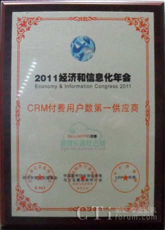 作為全球企業(yè)管理軟件領跑者,八百客參加了此次會議,并就IT業(yè)戰(zhàn)略性發(fā)展、工業(yè)轉(zhuǎn)型升級等問題和與會企業(yè)家進行了深入探討,集中、深刻闡釋產(chǎn)業(yè)精髓,洞悉和把握未來發(fā)展方向,尋求最佳的信息化成長模式。年會期間的招待晚宴穿插各類年度大獎的頒獎典禮,讓與會的政界、學界、商界等各路貴賓充分交流信息,建立友誼,為達成長期合作奠定良好的基礎;诎税倏驮趪鴥(nèi)CRM領域的優(yōu)秀表現(xiàn),本次年會特別授予了八百客“CRM付費用戶數(shù)第一供應商”的大獎。