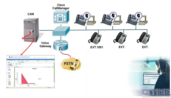 通過與Cisco 統(tǒng)一通信管理器(Cisco Communcation Manager)的無縫整合,CAM可以為企業(yè)提供相關(guān)語音通信的話務(wù)統(tǒng)計、呼叫計費(fèi)、流量分析等功能。通過簡單的報表生成使用戶可以方便、及時的對整個企業(yè)的通訊情況進(jìn)行分析,從而有效的對通訊資源進(jìn)行管理、控制并防止通信資源浪費(fèi)。
