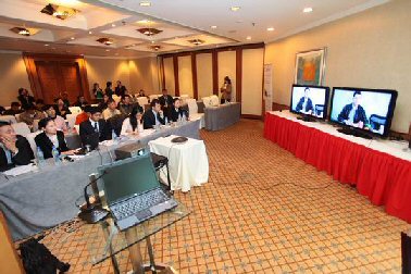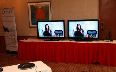 為了更好地展示新一代視頻系統(tǒng),LifeSize公司現(xiàn)場接通了美國總部的視頻會(huì)議畫面,畫面逼真流暢。LifeSize公司創(chuàng)始人、首席執(zhí)行官Craig