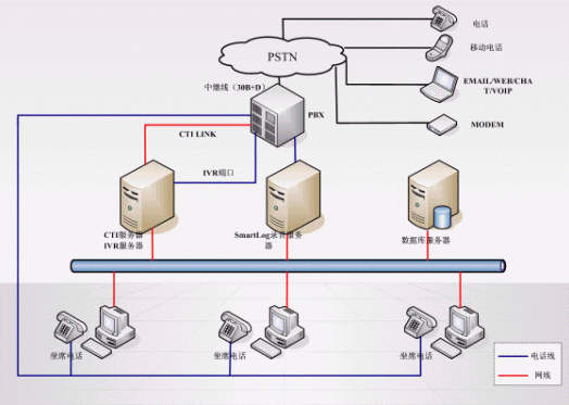 中科訊博一體化呼叫中心平臺(tái)采用三層體系結(jié)構(gòu):
